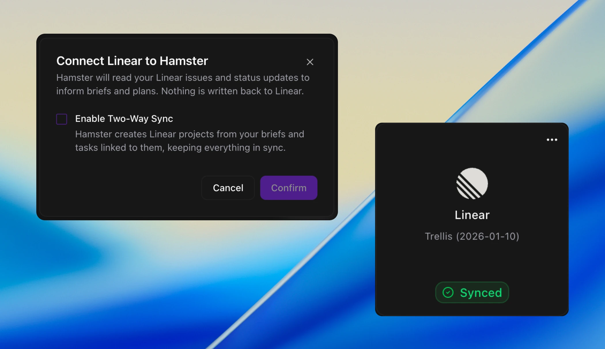 We've added two-way sync with Linear. Connect your workspace, and status changes flow both ways automatically.