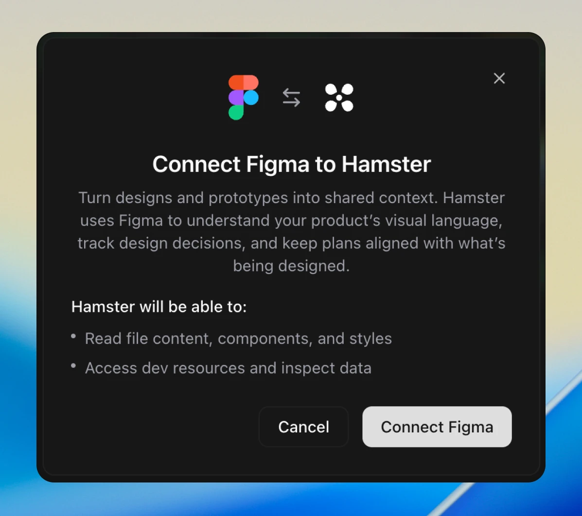 Hamster can now reference your Figma pages and frames when generating briefs, writing documents, or answering questions in chat.